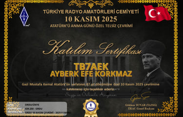 My name is Ayberk Efe Korkmaz, callsign TB7AEK. I'm an Electrical and Electronics Engineering student and a licensed amateur radio operator. I enjoy combining my technical interests with amateur radio and sharing what I learn along the way. Amateur Radio in Türkiye In Türkiye, amateur radio is supported and organized through associations like TRAC (Türkiye Radyo Amatörleri Cemiyeti). Anyone interested can take a licensing exam and legally operate on amateur bands with a personal callsign.